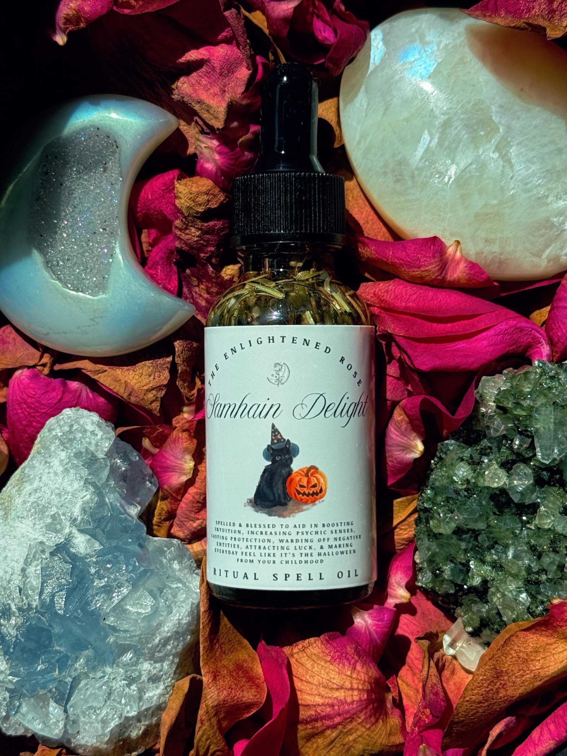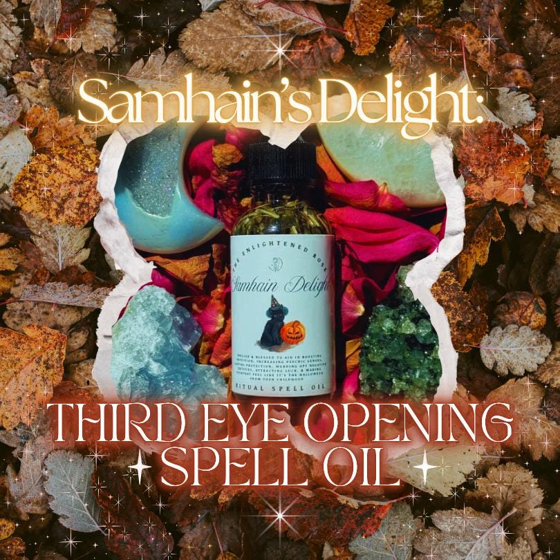 This listing is for my Samhain’s Delight Ritual Spell oil! This is a 1oz bottle’s worth of oil that is not only an instant spell in a bottle, but a fragranced oil that ALSO smells amazing!