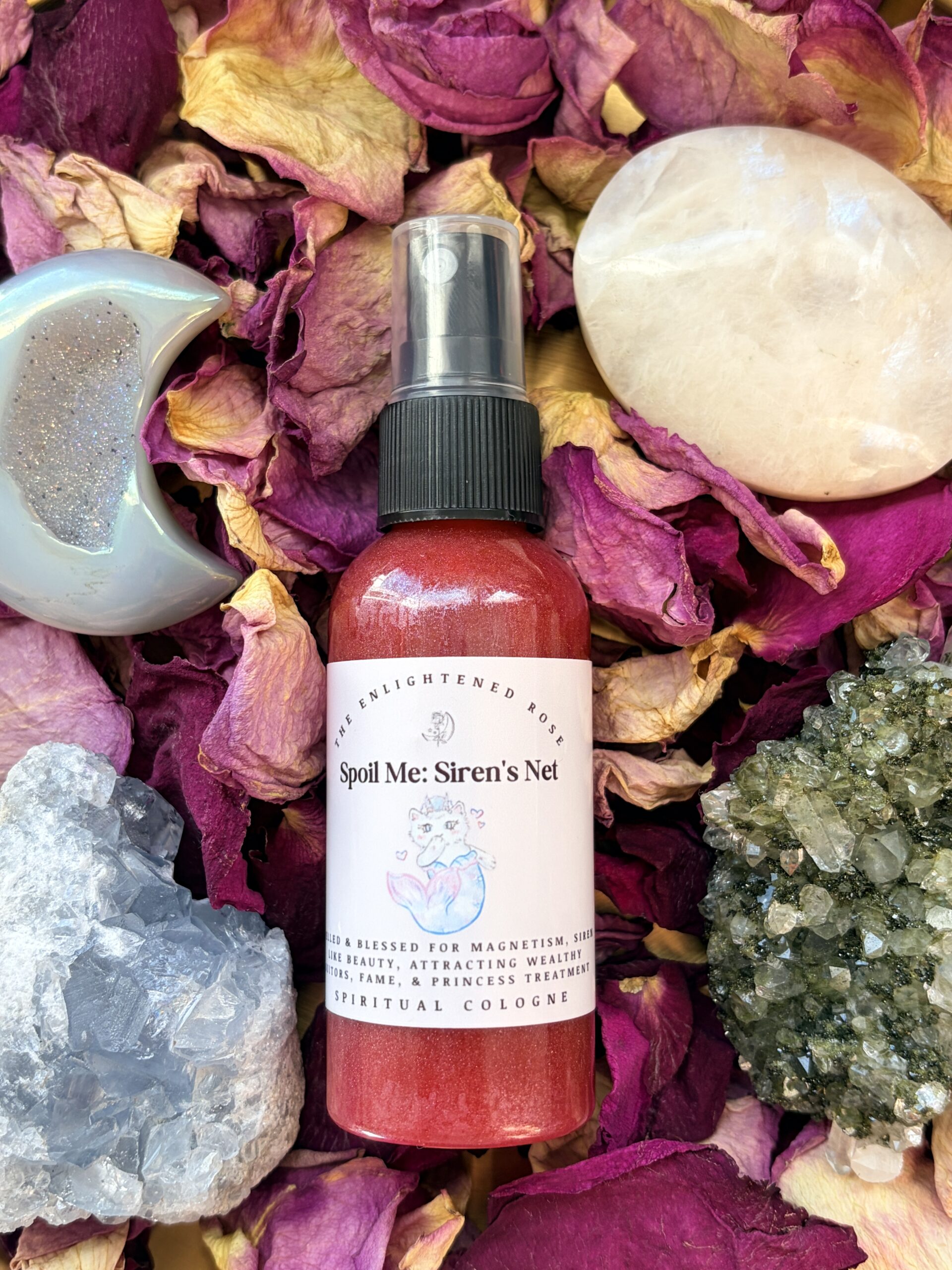 If you are looking to attract: spoil me energy, princess treatment, wealthy suitors, fame, siren-like beauty & magnetism, or even attract a sugar daddy, then Spoil Me: Siren’s Net is just what you need! This spiritual cologne comes in a newly revised formula in two different forms: with mica shimmer and without mica! Please pick which version you’d like based on your preferences!